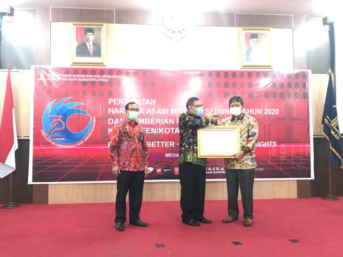 P.SIANTAR – Realitasonline.id | Pemerintah Kota (Pemko) Pematangsiantar meraih penghargaan Kota Peduli Hak Asasi Manusia Tahun 2019 dari Menteri Hukum (Menkum) HAM RI. Penghargaan tersebut diserahkan bersamaan dengan peringatan HAM Sedunia ke-72 yang dilaksanakan di Jakarta dan diikuti secara virtual di Lantai 5 Aula Kantor Wilayah Kementerian Hukum dan HAM Provinsi Sumatera Utara, Jalan Putri Hijau Medan, Senin (14/12)