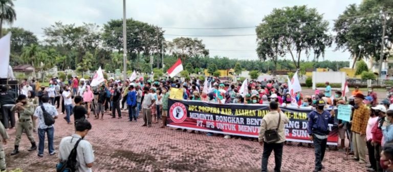 Asahan – Ratusan warga Desa Perbangunan dan Desa Pertahanan Kecamatan Sei Kepayang, yang tergabung dalam Pos Perjuangan Rakyat (Pospera) Kabupaten Asahan mendatangi datangi Kantor Bupati Asahan, meminta pembongkaran tanggul yang di buat oleh PT Inti Palm Sumatera (IPS), Senin (14/12).