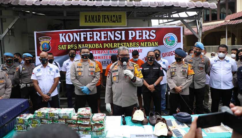 “Ini prestasi yang membanggakan di awal 2021. Karena jajaran Satuan Reserse Narkoba Polrestabes Medan berhasil menggagalkan peredaran 26,9 Kg sabu dari 4 tersangka yang salah satunya meninggal dunia karena mendapat tindakan tegas, keras dan terukur,” tegas jenderal bintang dua tersebut saat merilis kasus di RS Bhayangkara Medan, Kamis (14/1/2021).