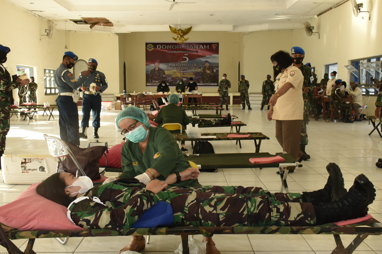 BELAWAN-Dalam rangka menyambut Hari Ulang Tahun yang Ke-75, Polisi Militer TNI Angkatan Laut (Pomal) Lantamal I Belawan melaksanakan kegiatan sosial berupa donor darah bertempat di Wisma Hanafiah Mako Lantamal I Belawan, Senin (15/02/2021)