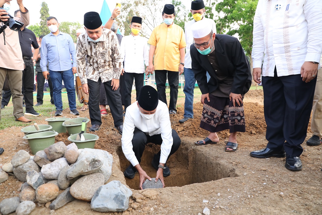 PADANGSIDEMPUAN – Wakil Gubernur (Wagub) Sumatera Utara (Sumut) Musa Rajekshah meletakkan batu pertama sekaligus meresmikan pembangunan Masjid Patayat Pondok Pesantren Al Anshor di Kota Padangsidimpuan, Sabtu (13/2/2021). Masjid tersebut diharapkan dapat dimanfaatkan para santri untuk beribadah dan meningkatkan ketakwaan kepada Allah SWT.