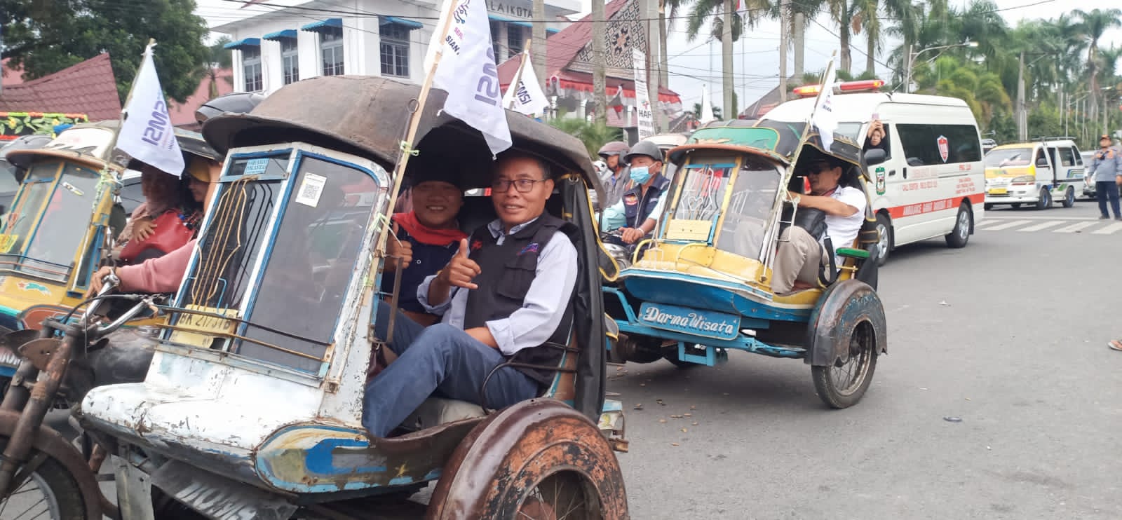 PEMATANG SIANTAR – Jalan-jalan sore alias JJS tentu bukan hal yang baru bagi kita. Tapi bagaimana jika menghabiskan waktu sore berkeliling kota, dengan becak motor antik zaman kolonial yang dulu sering dipakai sebagai kendaraan perang.