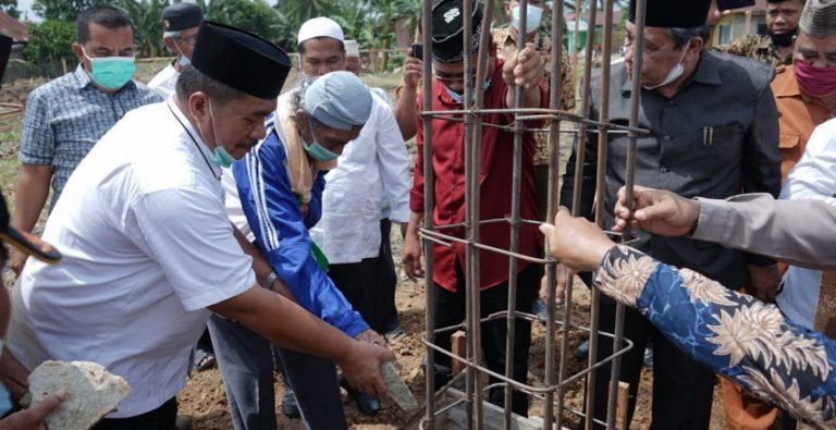 ASAHAN – Wakil Bupati Asahan Taufik Zainal Abidin Siregar MSi melakukan peletakan batu pertama pembangunan Pondok Pesantren Syam Zalilul Akbar di Dusun III Desa Pulau Maria Kecamatan Teluk Dalam, Jumat (9/4/2021).