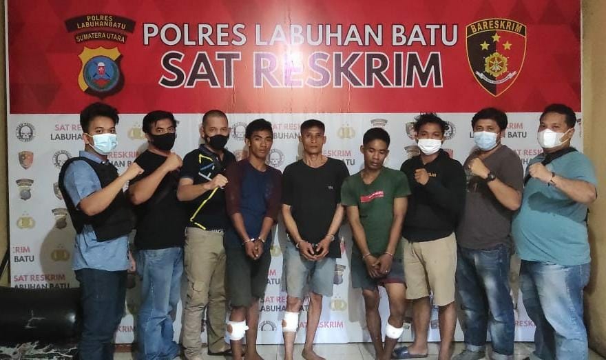 LABUHANBATU – Tekab (Team Khusus Anti Bandit) unit Resum Polres Labuhanbatu dipimpin Kanit Resum Iptu SM Lumbangaol SH atas arahan Kasat Reskrim AKP Parikhesit tangkap tiga orang pelaku tindak pidana pencurian dengan pemberatan (Curat), Minggu (13/6/2021).