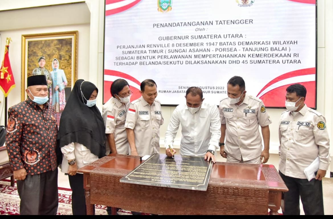 Hal ini dinyatakan Gubsu dihadapan Ketua Umum Badan Pembudayaan Kejuangan DHD’45 Sumut Mayjen TNI Purn M.Hasyim ketika hadir dalam rangka menandatangani Tatengger Perjuangan rakyat Asahan di Pulau Rakyat sebagai dampak Perjanjian Renville di rumah dinas Gubsu jl Sudirman 41 ( senin, 15 agustus 2022) di Medan.