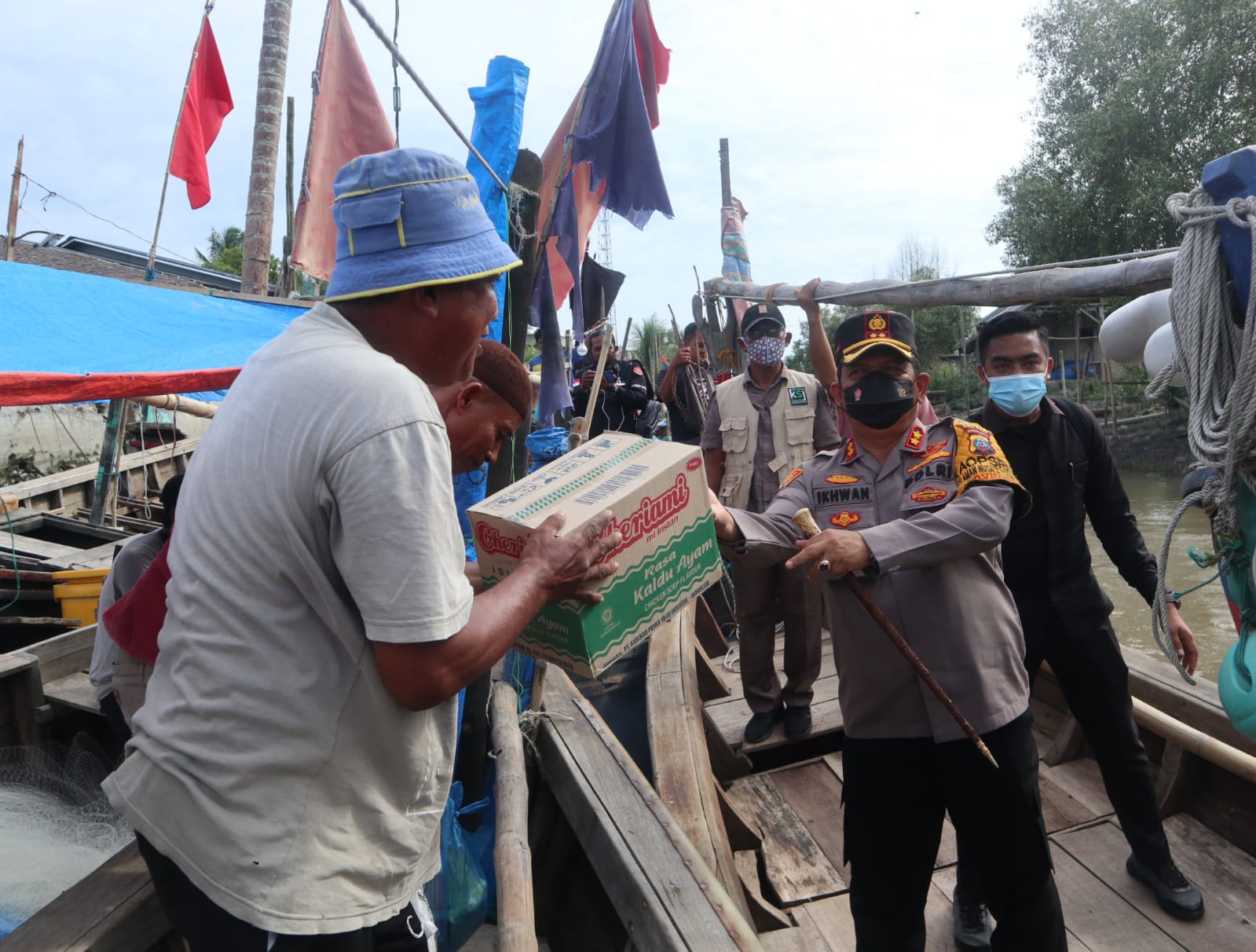 Sementara AKBP Ikhwan SH MH didampingi Pengurus Komunitas Sedekah Jumat (KSJ) dan Kasat Bhinmas AKP M.Syafii SH menyatakan, membantu nelayan ini terdorong dari hati untuk membantu para nelayan yang mengalami dampak dari Pandemi Covid 19. “Mereka juga korban dalam pembatasan pembatasan yang ada di kegiatan Masyarakat (PPKM),” katanya.