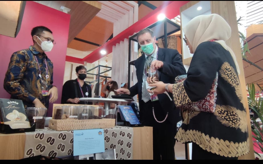 Selain produk spa dan aromaterapi, produk cokelat buatan Mason Bali juga digemari oleh para delegasi yang mampir dan tergoda untuk mencicipi tester cokelat di booth Indonesia Eximbank dan mereka juga kagum dengan cerita Desa Devisa Kakao Jembrana yang diinisiasi oleh LPEI.