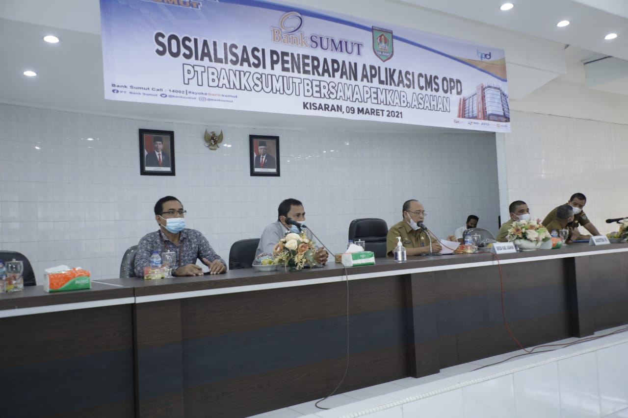 ASAHAN – Guna mendukung pengelolaan transaksi Pemerintah Daerah yang bersifat non tunai aplikasi CMS, PT Bank Sumut Cabang Kisaran laksanakan sosialisasi penerapan Cash Management System (CMS) kepada para OPD di Aula Melati Kantor Bupati Asahan, Selasa (9/3/2021).