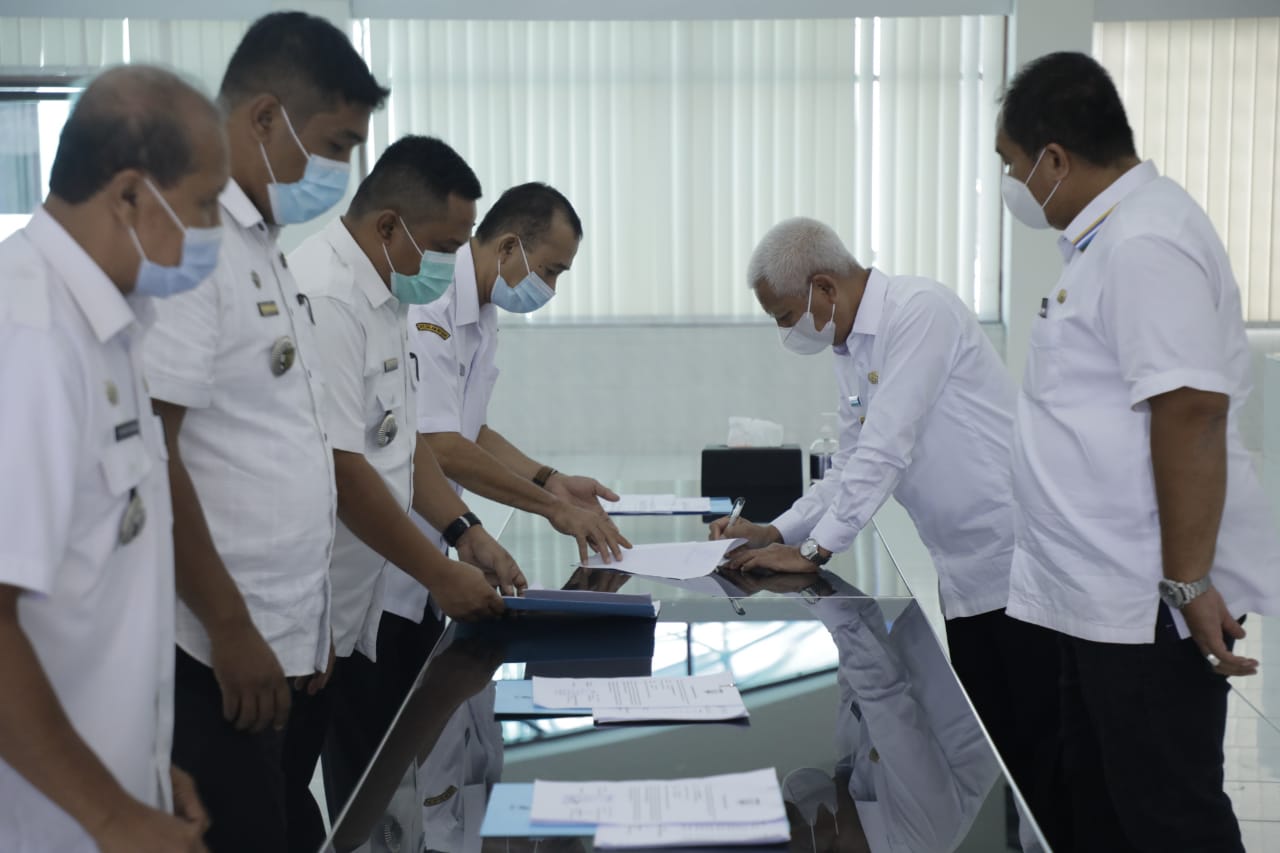 ASAHAN – Sepuluh hari dilantik menjadi Bupati Asahan, H Surya BSc mulai berbenah dengan Evaluasi Kinerja melakukan sidak ke beberapa Dinas dan hari ini melakukan penandatangan perjanjian kinerja dengan seluruh OPD dan Camat di aula Melati Kantor Bupati Asahan, Rabu (10/3/2021).