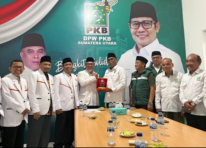 Kunjungan silaturahmi Ketua DPW PKS Sumut Asesoc Prof. Dr. H.Usman Jakfar didampingi Sigit Pramono, Cecep Wimaha, Misno Adhi Syahputra, Hj. Nurrazizah, H. Mustafa, disambut hangat oleh Ketua DPW PKB Sumut H.M. sukhairi Nasution, didampingi Dewan Syuro Jansen Hrp, Wakil Ketua Zabidi Ritonga, Syaiful Syafri, Ita Julianti dan Sekretaris Loso Mena serta Desk Pilkada Munir Ritonga.
