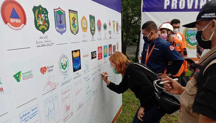 Sebelumnya Kabid Pencegahan dan Kesiapsiagaan Gelora Viva Sinulingga SE MM. mengutarakan bahwa angka penyebaran Covid-19 di Sumut mulai menurun. Gelora menjelaskan pelatihan dua ribu relawan dibagi dalam sepuluh hari. Satu hari dilatih 200 relawan. Yakni 100 orang pada pagi hari yang dibagi empat kelas. Sedangkan 100 orang lagi dilatih pada siang hari yang juga pada empat kelas pelatihan. Peserta dibekali materi edukasi, mitigasi serta sosialisasi yang berbasis kearifan lokal dan lokalitas.