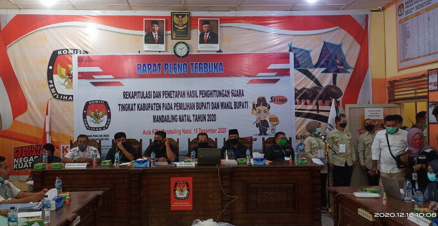 MADINA – Rapat pleno rekapitulasi penghitungan perolehan suara Pilkada Mandailing Natal (Madina) 2020-2024, berjalan alot, Rabu (16/12/2020).