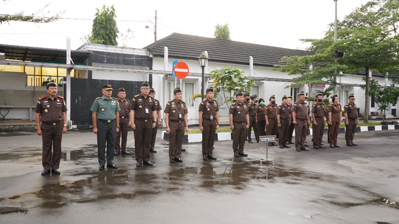 MEDAN-Asisten Pembinaan Kejaksaan Tinggi Sumatera Utara (Asbin Kejati Sumut) Sufari,SH,MH menjadi inspektur upacara pada acara apel pagi seluruh jajaran Kejati Sumut, Senin (16/1/2023).
