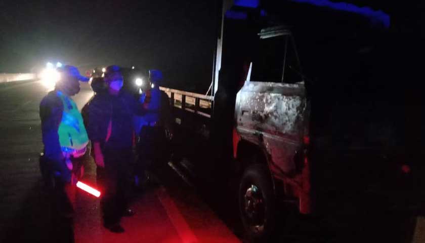 Kapolres Sergai AKBP Robin Simatupang didampingi Kasat Lantas Polres Sergai, AKP Agung Basuni kepada wartawan, Selasa (16/2) membenarkan peristiwa kebakaran sebuah mobil truk trado Colt Disel di Ruas Jalan Tol Medan -Tebingtinggi.