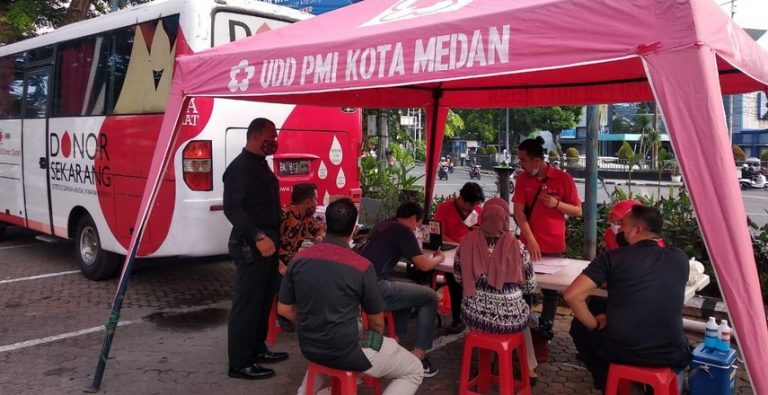 MEDAN – Bank Sumut bekerjasama dengan Palang Merah Indonesian (PMI) Kota Medan menggelar donor darah. Kegiatan itu berlangsung, Rabu (10/3/2021), di Ballroom Lantai 10 Gedung Pusat Jalan Imam Bonjol Medan.
