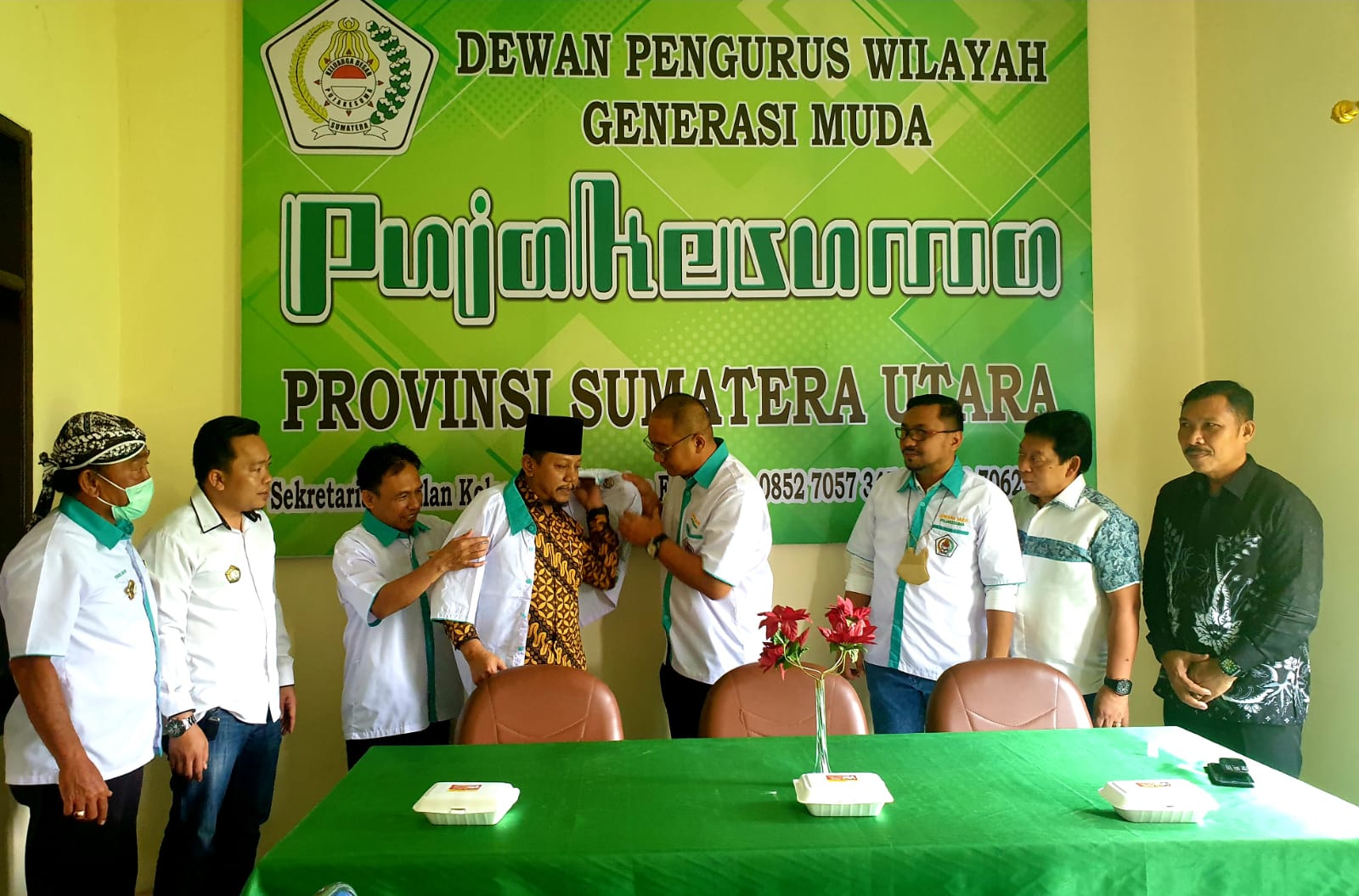 Dihadiri Majlis Pertimbangan Organisasi (MPO) Drs Syaiful Syafri MM, Danu Prayitno Siyo, MM dan DR Purwanto M.Pd, Bayu Suryo Adiwinata dipakaikan kemeja GM Pujakesuma oleh Ketua DPW GM Pujakesuma Sumut DR Supriadi, M.Si didampingi Sekretaris Dedy Tano.