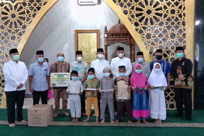 MEDAN – realitasonline.id | Pemko Medan menyerahkan bantuan untuk Masjid Nurul Islamiyah di Jalan Karya Tani Gg Makmur Kelurahan Pangkalan Mansyur Kecamatan Medan Johor, Kamis (15/4/2021). Bantuan senilai Rp 50 juta tersebut diberikan dalam Safari Ramadhan dan diharapkan dapat bermanfaat untuk kemakmuran masjid.