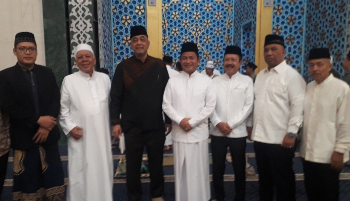 Pj Gubsu Dr Hassanudin, Sekdaprovsu Arief S Trinugroho, Staf Ahli Gubsu Muhammad Armand Effendy Pohan, Assisten Pemerintahan Basarin Yunus Tanjung, Sekretaris DPRD Sumut Zulkifli dan lainnya ikut Shalat di sini.