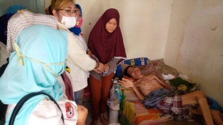 MENCIRIN-Muhammad Mawawi Pulungan (62) agaknya sedikit bernafas lega. Penderita sakit paru paru yang telah mengalami penderitaan menahun ini mendapat perhatian dari para Ibu-ibu Relawan Satria Nusantara Bersatu (SNB) pimpinan Ir Bambang Lusiadi.