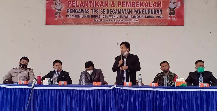 PANGURURAN – Panitia Pengawas Pemilu Kecamatan atau Panwaslucam Pangururan melantik 83 orang Pengawas Tempat Pemungutan Suara (PTPS) untuk wilayah Kecamatan Pangururan. Acara berlangsung, Senin (16/11/2020), bertempat Aula AE Manihuruk, Desa Lumbansuhisuhi Toruan, Pangururan.