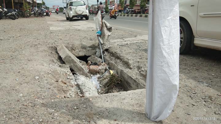 “Dalam dua bulan terakhir ini, beberapa unit mobil dan sepeda motor terperosok dalam saluran ini. Bukan saja kenderaan yang rusak, tetapi ada pula orang yang luka karena terperosok ke lubang,” kata seorang warga yang ditanya Realitas di lokasi kejadian, Senin (16/11/2020)
