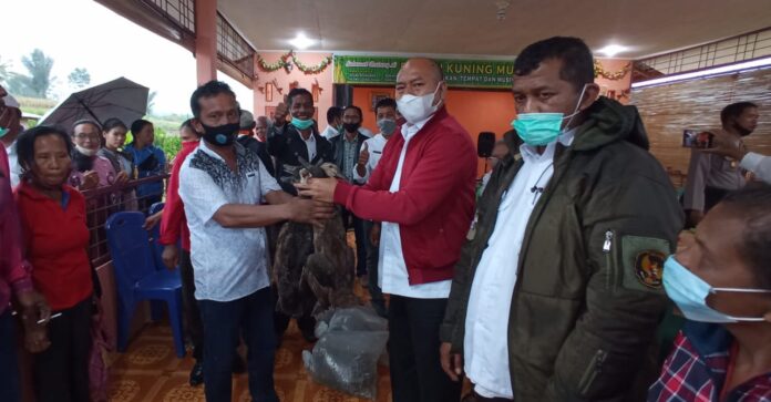 Di Desa Padang Parsadaan, Bupati Taput Nikson Nababan, Rabu kemarin (16/12) 2020, menyerahkan bantuan 15 ribu benih ikan, 15 ekor Kambing dan 270 ekor Itik beserta pakannya.