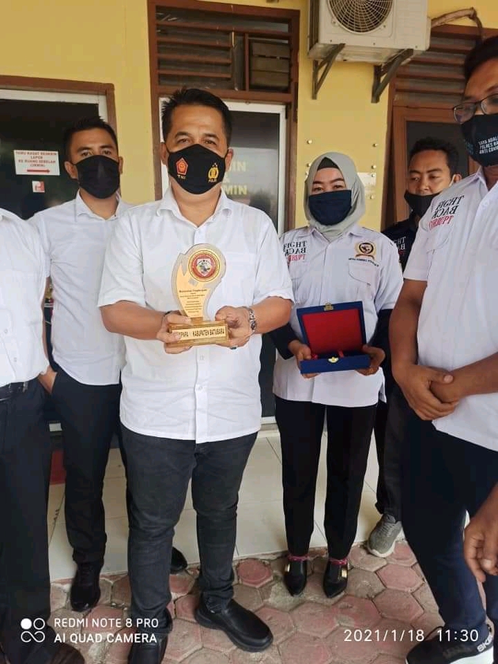 Sebagai elemen masyarakat, Badan Peneliti Independen Kekayaan Penyelenggara Negara dan Pengawas Anggaran Republik Indonesia (BPI KPNPA RI) Kabupaten Batu Bara mengganjar prestasi Kasat Reskrim Polres Batu Bara dengan memberi award (plakat penghargaan), di depan kantor Sat Reskrim, Senin (18/1/2021).