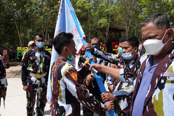 Pantauan, prosesi pengukuhan pengurus DPD IPK Paluta ditandai dengan penyerahan bendera Pataka oleh wakil ketua DPD IPK Sumut yang juga Korda IPK Tabagsel Darwin Lubis kepada ketua DPD IPK Paluta Syahrul Fahmi Siregar dengan mematuhi protokol kesehatan yang diatur pemerintah. (ASR)