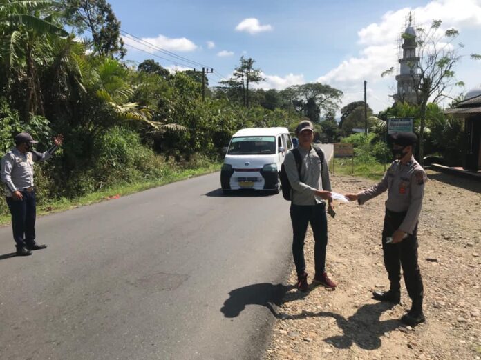 Operasi Yustisi di gelar di Jalan Lintas Sumatera Desa Parsalakan Kecamatan Angkola Barat Kabupaten Tapanuli Selatan, dipimpin Perwira Pengawas (Pawas) Kasat Intelkam AKP Eldi Koswara, diwakili Perwira Pengendali (Padal) Kasat Tahti Iptu. Nanang Arief