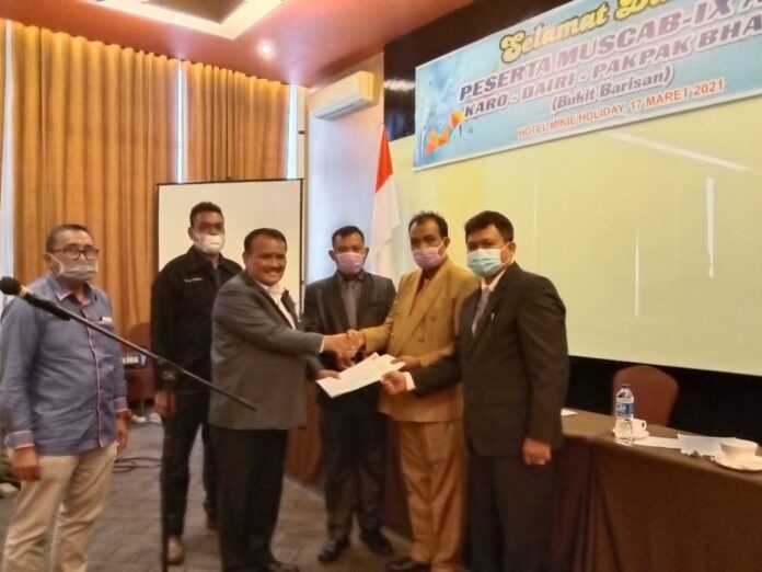 Usai pembacaan hasil rumusan muscab berhasil memilih kepengurusan , Mambar Perangin-angin dilantik dan dikukuhkan oleh Ketua Umum AKLI Sumut Parlaungan Simangunsong,ST ditandai dengan penyerahan surat keputusan.