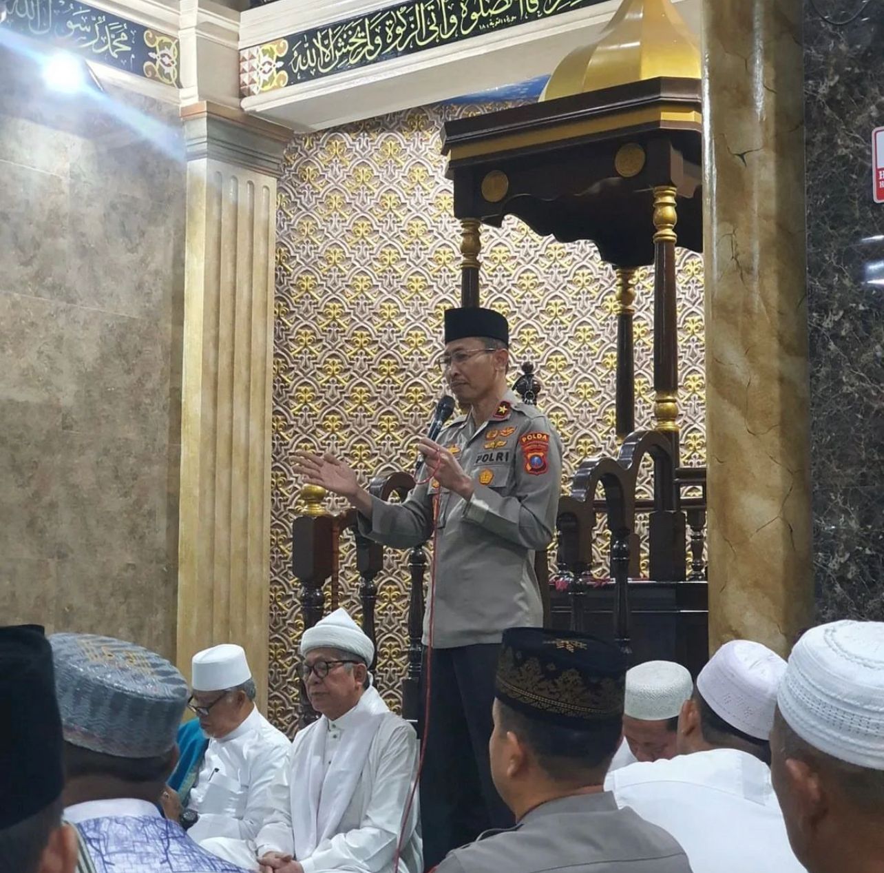 Wakapolda juga menghimbau para jamaah untuk melawan berita hoax, masyarakat diminta untuk mengedepankan upaya konfirmasi atau tabayun terhadap berita yang berkembang.