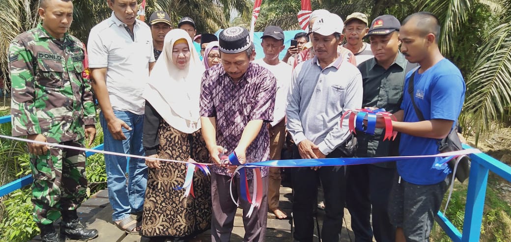 Peresmian jembatan Batang Kumu yang merupakan hasil dari swadaya masyarakat, Sabtu(18/07/2020)  dihadiri Camat Hutaraja tinggi, Sudaryono S.Sos, Babinsa Koramil 09 Sosa, dan para toko masyarakat desa Ujung Batu 5.