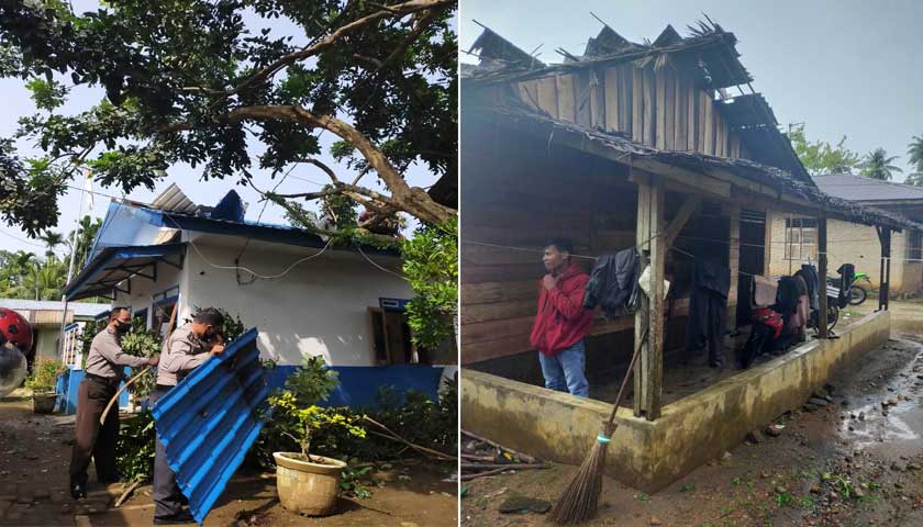 Setelah angin puting beliung berlalu dan sudah tidak ada lagi. Warga saing bahu membahu bersama pihak Muspika dan Kepolisian, membantu memasang seng rumah warga.