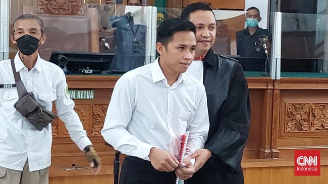 Tak cuma itu, Bharada E juga terlihat duduk di kursi terdakwa dengan tenang tanpa pakai masker, mendengarkan pembacaan dakwaan jaksa.