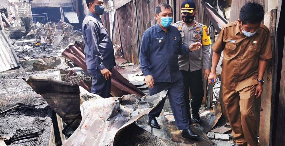 KARO – Bupati Karo Terkelin Brahmana SH MH meninjau lokasi kebakaran Pusat Pasar Tradisional Berastagi. Kebakaran itu sendiri menghanguskan 535 kios dan delapan ruko akibat amukan ‘sijago merah’, Selasa (17/11/2020), pukul 01.30 WIB.