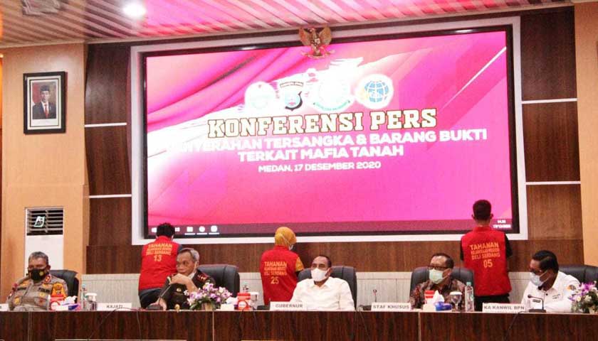 Konfrensi pers di kantor Kejati Sumut langsung dipimpin oleh Kajati Sumut IBN Wiswantanu, didampingi Kapolda Sumut Irjen Pol Martuani Sormin, Kepala Kantor Wilayah Badan Pertanahan Sumut dan disaksikan langsung oleh Gubernur Sumatera Utara Edy Rahmayadi dan diikuti secara virtual oleh Menteri ATR/BPN Sofyan Djalil.