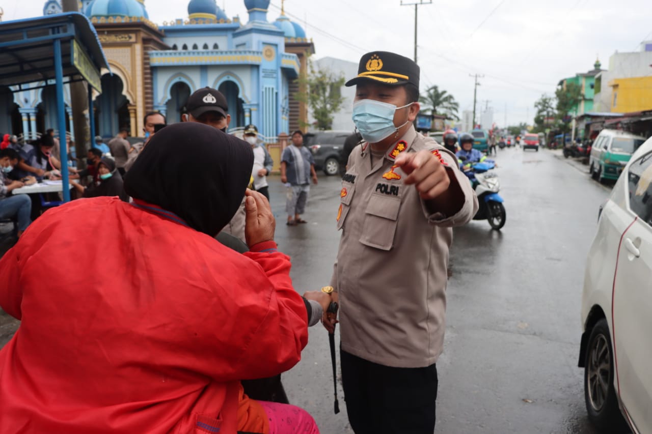 Pantauan wartawan, AKBP Faisal RH Nasution terjun langsung ke lokasi vaksinasi keliling dengan mengajak pengguna jalan di Hamparan Perak untuk divaksin guna ketahanan tubuh.