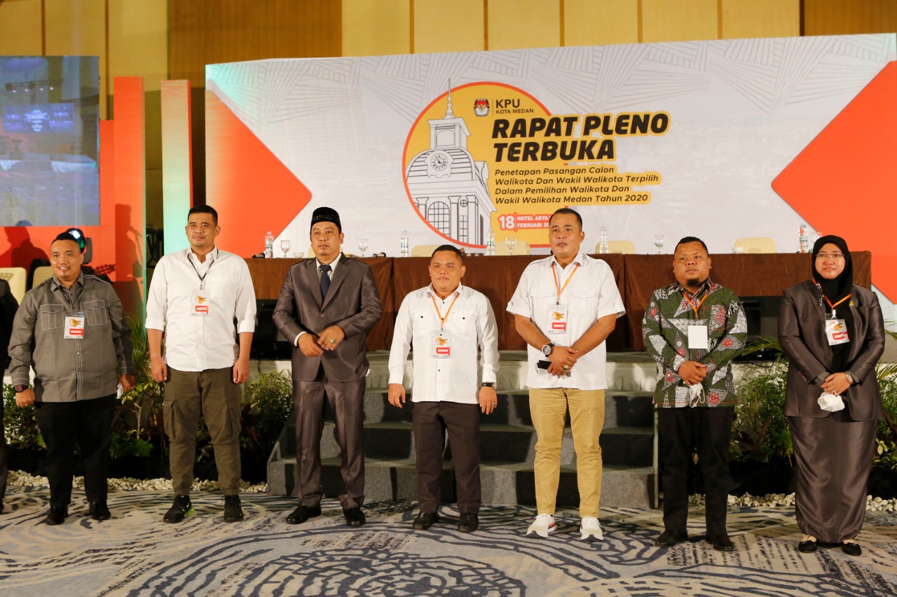 MEDAN – KPU Medan secara resmi, menetapkan pasangan calon (paslon) nomor urut 2 atasnama Bobby Afif Nasution-Aulia Rachman menjadi Walikota-Wakil Walikota Medan terpilih, hasil penyelenggaraan Pilkada serentak tahun 2020. Penetapan itu berlangsung, Kamis (18/2/2021), di Hotel Aryaduta.