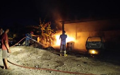 Beberapa warga masuk ke dalam gudang, ternyata mobil Kijang Krista BK 1362 DM terbakar. Warga juga mendengar suara ledakan sebanyak empat kali.
