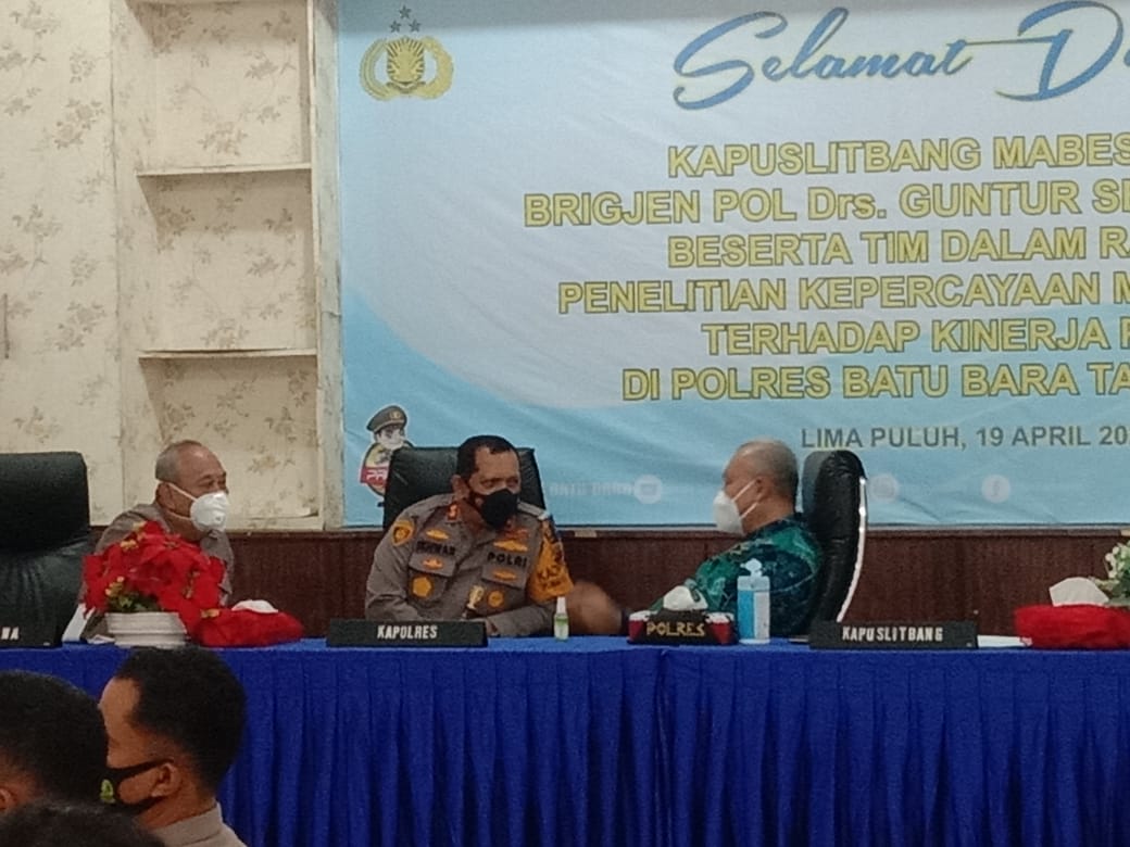 Dalam kehadiran Kapuslitbang Mabes Polri Brigjen Pol Drs Guntur Setyanto Msi bersama tim disambut Kapolres Batubara diwakili Waka Polres Kompol Rudi Chandra SH MH dan jajaran serta Para tokoh masyarakat di kabupaten Batubara dengan menerapkan protokol kesehatan.