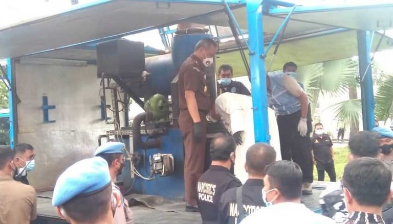 Pemusnahan musnahkan 205kg sabu barang bukti sabu, pil ekstasi dan ganja itu dilakukan menggunakan mesin incenerator milik BNNP Sumut.