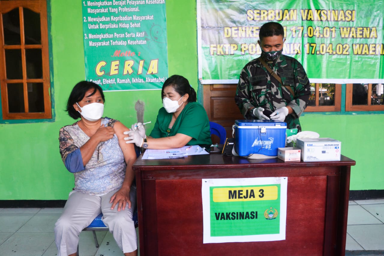 ABEPURA-Sebanyak 60 personel dari keluarga besar TNI ( KBT) dari Korem 172/PWY menjalani program vaksinasi Covid-19 tahap pertama bertempat di Detasemen Kesehatan Wilayah (Denkesyah) 17.04.02/Waena, jalan Padang-Bulan, Kota Jayapura, Selasa (18/5/2021).