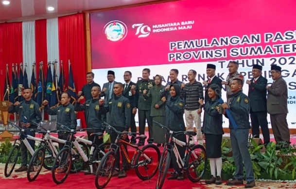 Pj Gubsu Serahkan Sertifikat dan Bagi-bagi Sepeda pada Pemulangan Paskibraka Sumut 2024