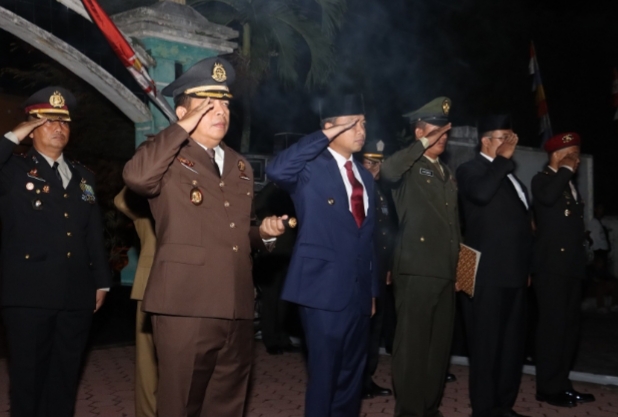 Tebing Tinggi – Penjabat (Pj.) Wali Kota Tebing Tinggi Dr. Moettaqien Hasrimi, S.STP., M.Si. didampingi Plt. Sekdako H. Kamlan Mursyid, S.H., M.M., CGCAE mengikuti apel kehormatan dan renungan suci di Taman Makam Bahagia, Jln. Taman Makam Bahagia, Kelurahan Tanjung Marulak, Sabtu (17/08/2024) dini hari.