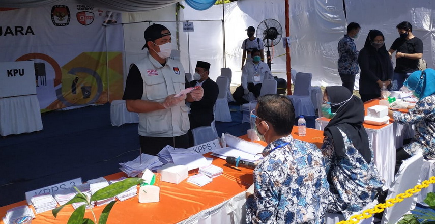 Simulasi Pemungutan dan Penghitungan Suara dengan Protokol Kesehatan serta Penggunaan Sirekap Tingkat Tempat Pemungutan Suara (TPS) berlangsung dengan memenuhi standar protokol kesehatan.