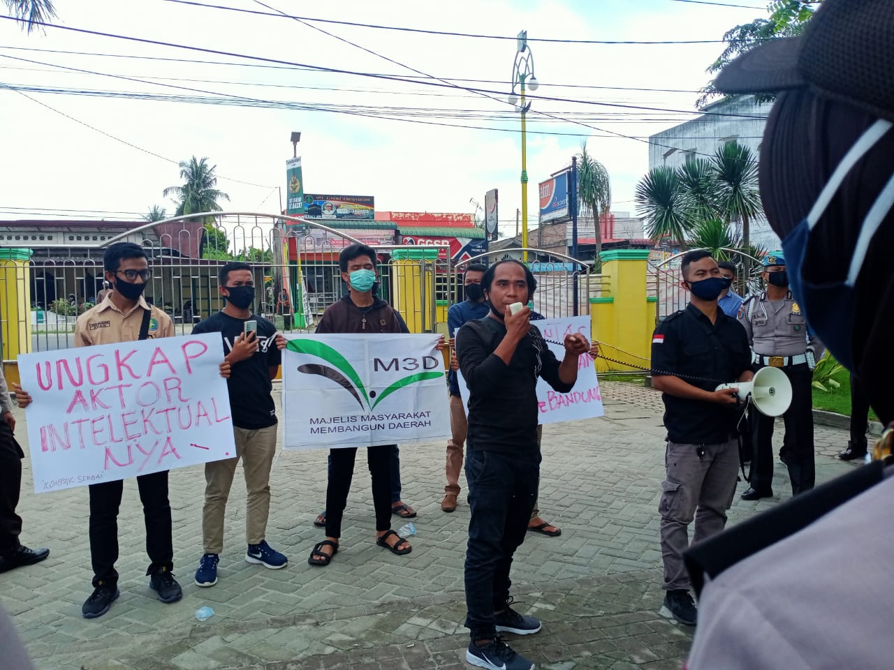 dalam orasinya menyampaikan para Kades itu jalan-jalan ke zona merah ditengah Pandemi Covid-19. Namun setelah pulang tanpa dilakukan test swab sampai sekarang.