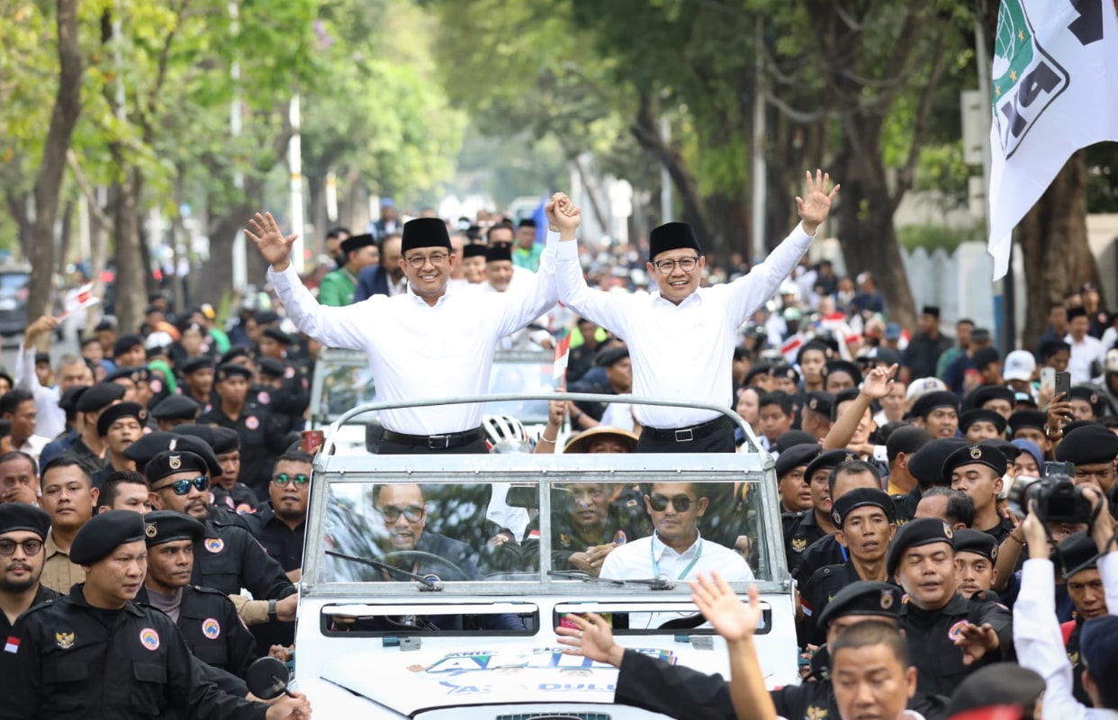 Pendaftaran ke KPU diawali minta ijin ke orang tua dari Anies dan Muhaimin, lanjut Sholat Subuh serta berkunjung ke Kantor DPP PKS, Kantor DPP PKB dan Kantor DPP Nasdem, dan usai Doa para Kiyai pasangan Amin mengenderai Jeep Putih terbuka menuju Kantor KPU RI, diiringi lantunan yalal waton dari lautan masyarakat dan yel yel Anies Presiden RI, Muhaimin Wakil Presiden Ri.
