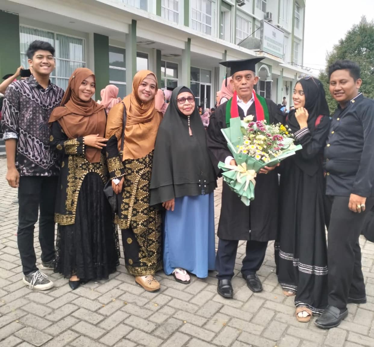 Ishaq yang didampingi istri , ibu mertua, dua anak gadisnya dan menantu (yang ketiga tiganya saat ini sdg menyelesaikan pendidikan magisternya di UNPRI dan UINSU )