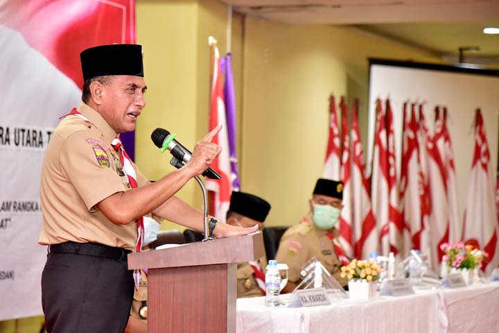Gubernur Edy Rahmayadi menyampaikan, yang membuat pramuka hebat adalah orang-orangnya berjiwa muda, sebab sejatinya pramuka itu pemberani dan tegas. “Di Pramuka juga diajarkan jiwa korsa, loyalitas dan bisa kerja sama. Coba bayangkan bila Pramuka tidak bisa kerja sama, pada latihan baris-berbaris, satu saja tidak kompak akan rusak formasi barisannya,” ujar Edy Rahmayadi.