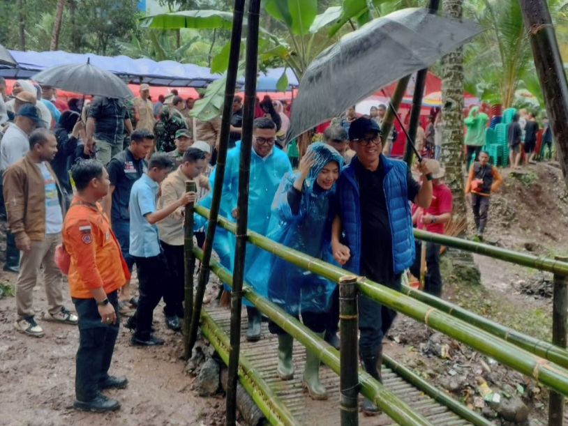 Momen romantis sepasang kekasih juga tertangkap kamera saat berjalan bergandengan tangan meniti jembatan Baduy kecil yang membelah sungai. Gus Ipul di Taman Firdaus tampak menerobos rintik hujan.